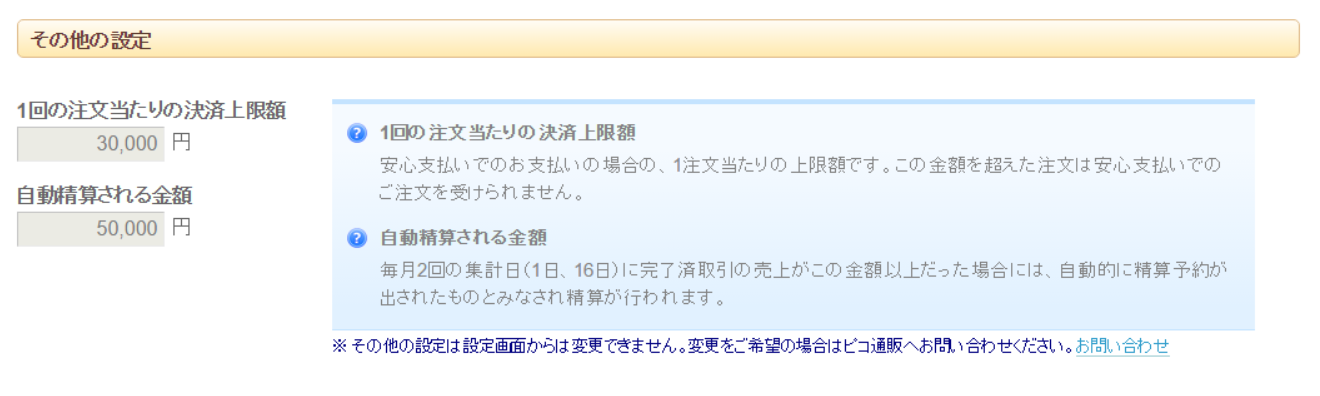 ※設定画面からは変更できません。変更を希望される場合はピコ通販事務局にお問い合わせください。