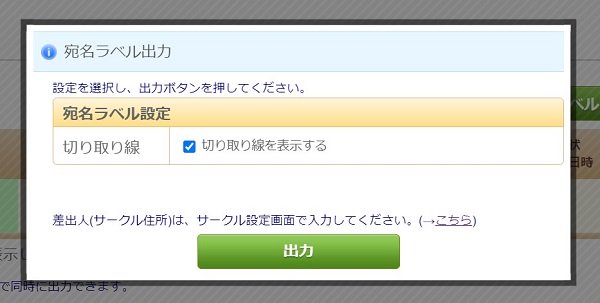 ダイアログが表示されますので、設定を選択し出力ボタンを押してください。「切り取り線を表示する」チェックを外せば、切り取り線を非表示にできます。