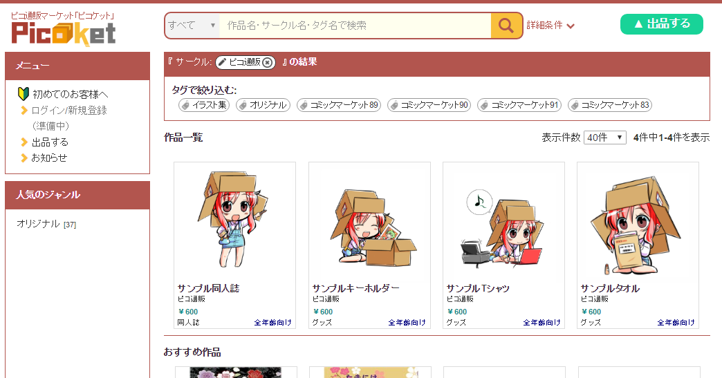 ピコケットはピコ通販に掲載中の作品を掲載できるポータルサイトです。キーワードやタグでの検索機能を備えておりますので、ジャンル買いされる方などの訪問も期待できます。