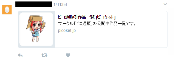 ピコケットURLをTwitterで告知した場合は、自動的にTwitterカードも表示されます。