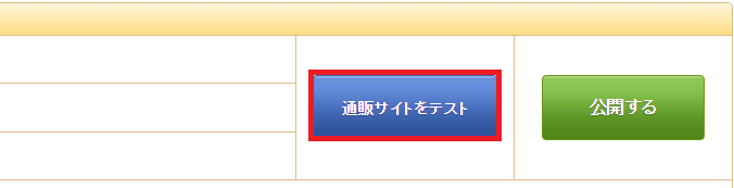 ダッシュボードにある「通販サイトのテスト」ボタンをクリックしてください。ここまでに設定した内容をもとに、通販サイトを公開した場合のテストを行うことができます。注文確認メールなどの通知が実際に届きますので、公開前にお試しください。