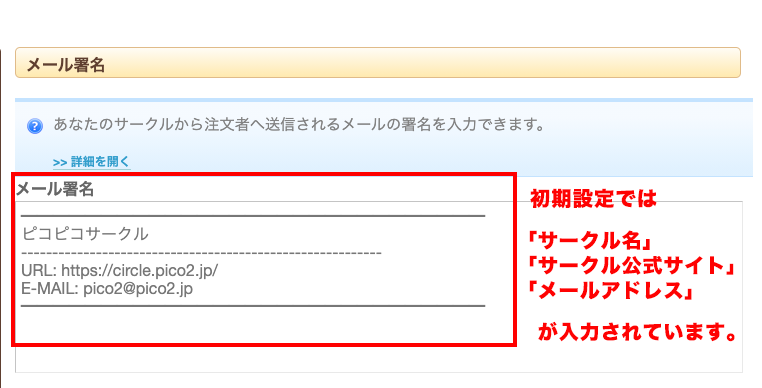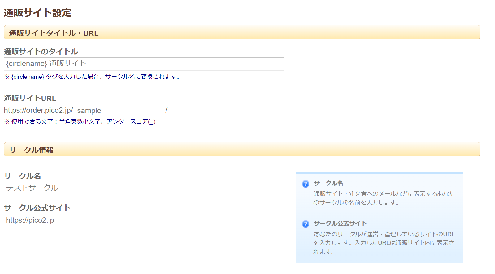「通販サイトのタイトル」は、登録時点では「サークル名」が自動的に反映されています。変更したい場合はこちらを入力します。