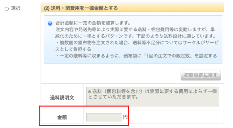 あらかじめ頒布物の価格に送料を含めてしまう場合はこちらになります。 -