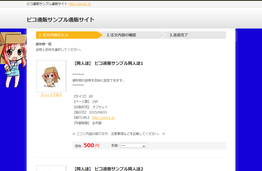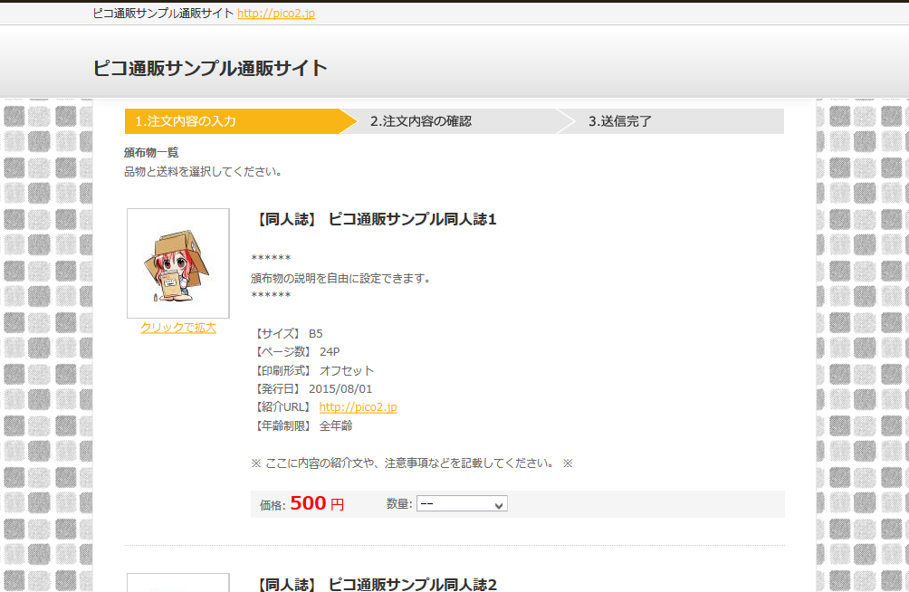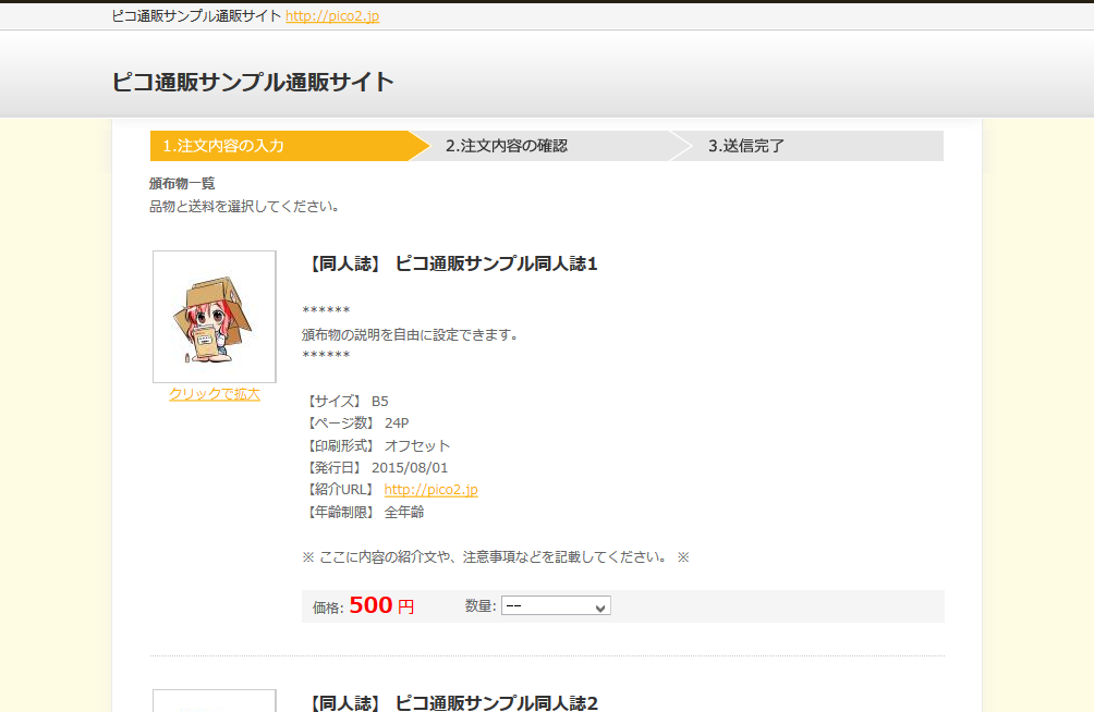 ピコ通販のデモ通販サイトです。実際のご注文の流れをお試し頂けます。